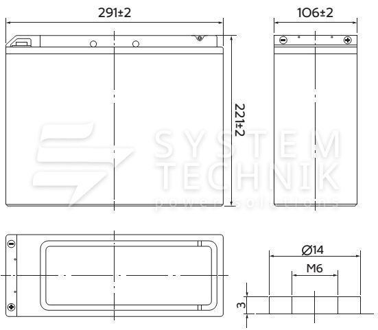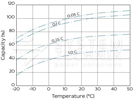 - Срок хранения без подзаряда: 6 мес. при 25°C;