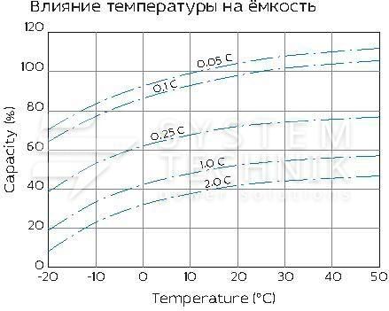 - Срок хранения без подзаряда: 6 мес. при 25°C;
