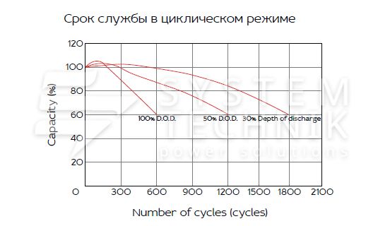 - Срок хранения без подзаряда: 6 мес. при 25°C;