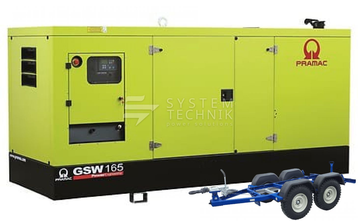 - Дизельный генератор Pramac GSW 165 P 440V В кожухе на прицепе