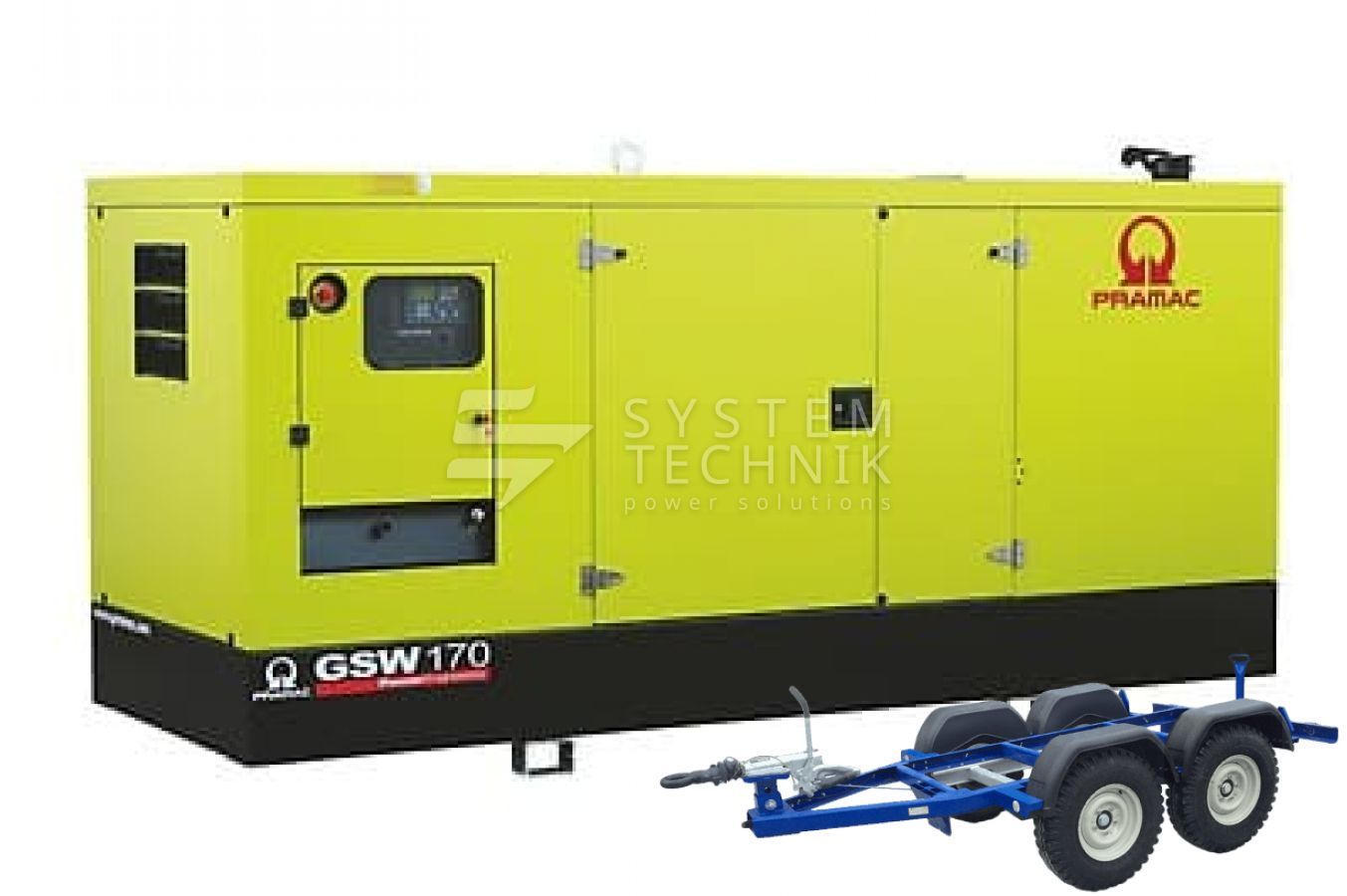 - Дизельный генератор Pramac GSW 170 V 230V 3Ф В кожухе на прицепе
